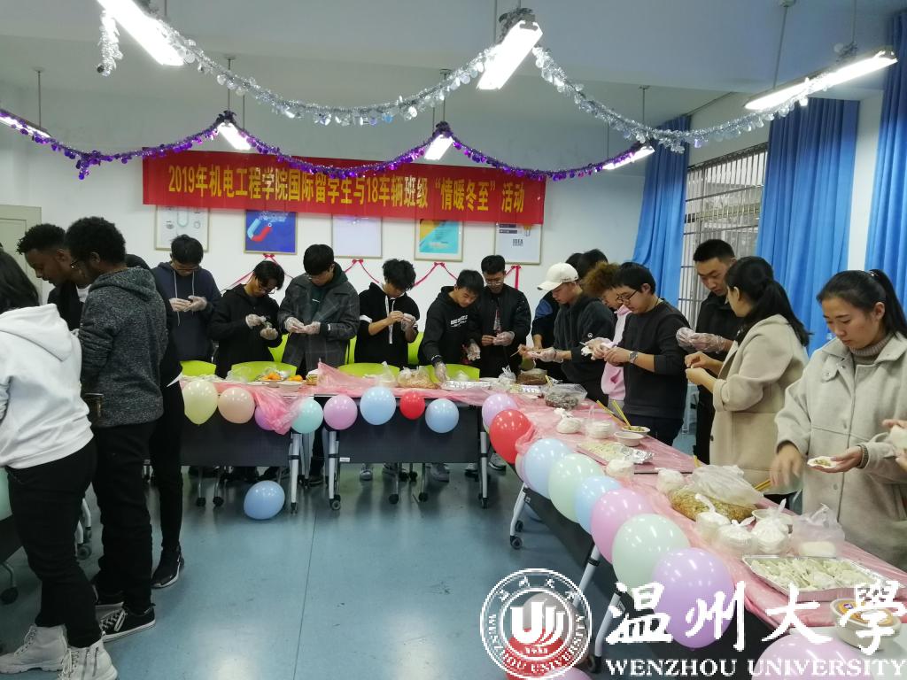 2019年12月22日,麻豆视频 国际留学生与18级车辆工程专业学生在6B201举办了“情暖冬至、共度佳节、传递友谊”的冬至包饺子活动,麻豆视频-免费麻豆视频-台湾麻豆影片 老师也积极参与其中。