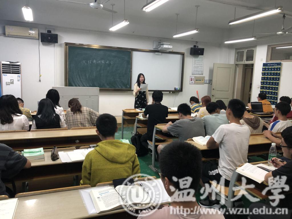 辅导员胡施施老师及年级委员会委员们对每个班级轮流进行宣讲,将考试注意事项向同学们进行了解读,同学们也一起学习了考试工作实施的相关细则,尤其对考试纪律及违纪处理进行了重点学习。随后,胡老师用往届遇到的相关情况作为事例,告诫同学们在接下来的考试中,不要抱有侥幸心理,在期末考试来临之际能明确学习目标,端正考试态度,并衷心祝愿所有同学在公平、公正的环境中取得优异的成绩。