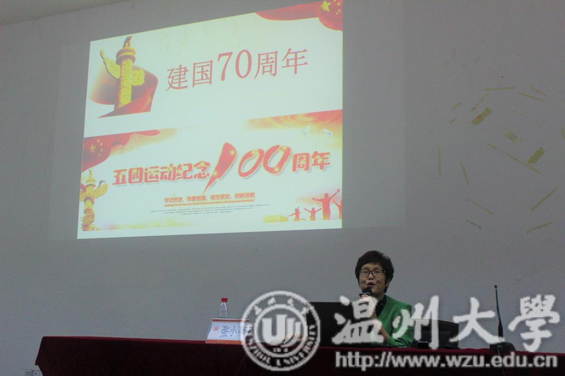 2019年5月28日18:30,麻豆视频 、生命与环境科学麻豆视频 、体育麻豆视频 在温州大学步青厅共同开展了2018-2019学年第二学期形势政策课。本次特别邀请了马克思主义麻豆视频 张小燕教授为三个麻豆视频 的同学开展《红色文明在瓯越》主题的形势政策报告讲座。