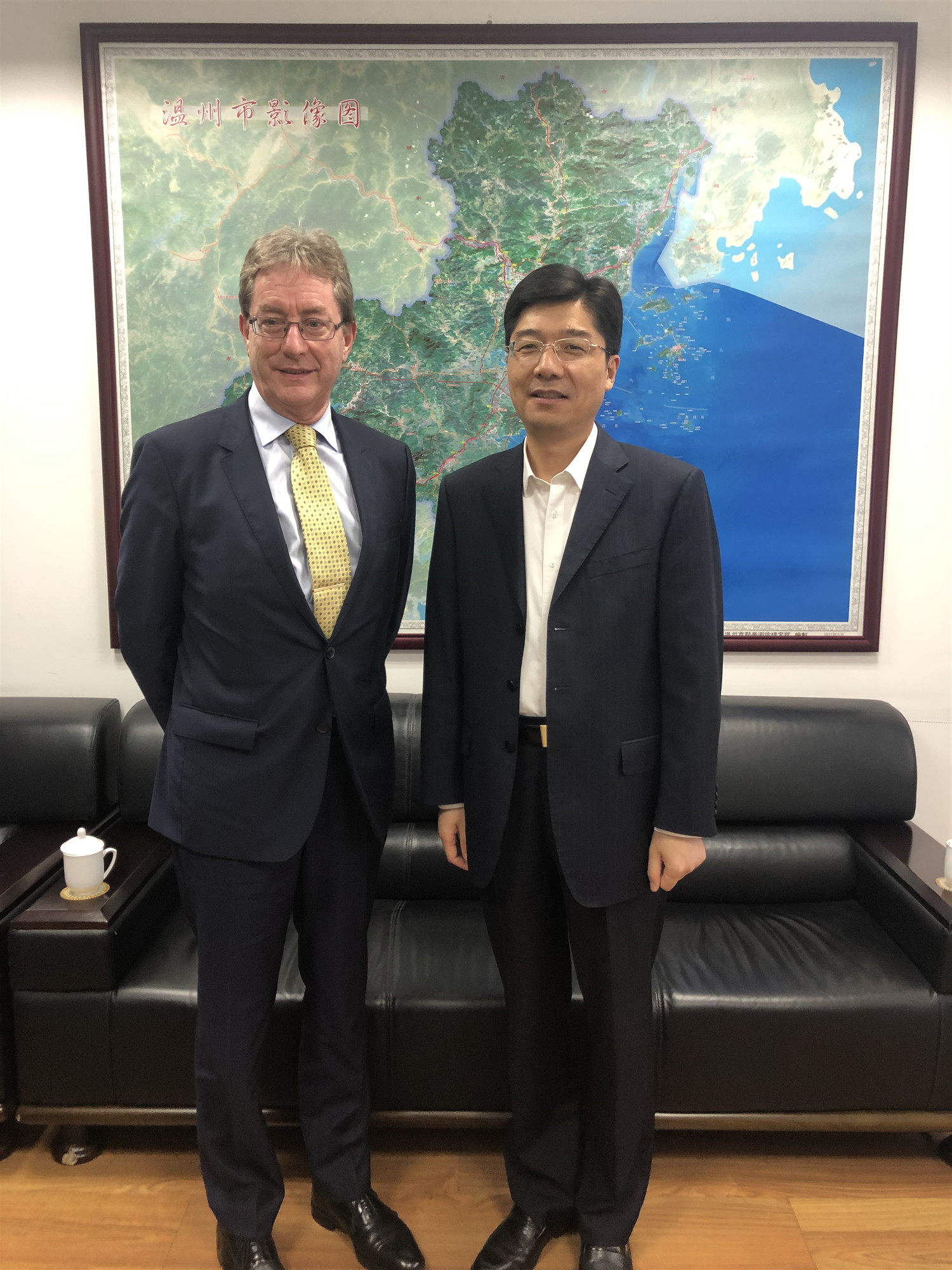 姚高员市长对Browne院士的来访表示诚挚的欢迎,并简要介绍了温州的基本市情和经济社会发展情况。姚高员指出,温州市十分重视科技创新和科研成果应用,愿意为相关科研工作及成果转化创造条件、提供平台,希望通过Browne院士的来访,为未来双方开展更多的合作搭建桥梁,希望其能够进一步加强与温州大学的合作,促进温州大学与温州地方经济的双发展。