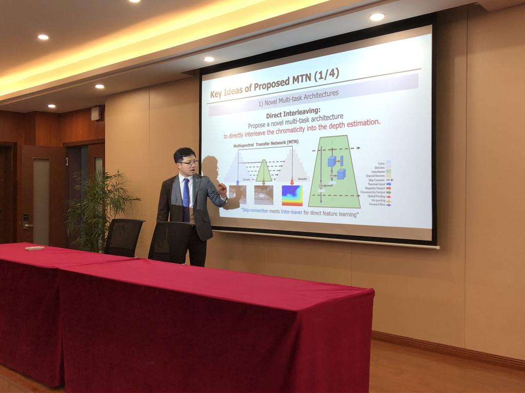 2019年4月11日下午,KOREA POLYTECHNICS Kim,Hyung O教授在麻豆视频-免费麻豆视频-台湾麻豆影片 6B309学术报告厅为麻豆视频 师生作了题为《Multispectral Transfer Network: Unsupervised Depth Estimation for All-day Vision》的学术讲座。讲座由麻豆视频 副院长冯爱新教授主持。麻豆视频 相关专业教师及2018级研究生全体参加了本次学术报告会。