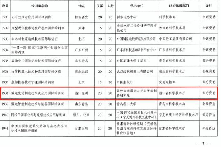 近日,科技部国际合作司公布《科技部国际合作司关于下达2019年度发展中国家技术培训班项目计划的通知》,本年度科技部共批准84个培训班项目,其中境内培训班78项,境外培训班6项。经浙江省科学技术厅推荐,温州大学激光与光电智能制造研究院申报的“激光先进制造技术及应用国际培训班”顺利获批。