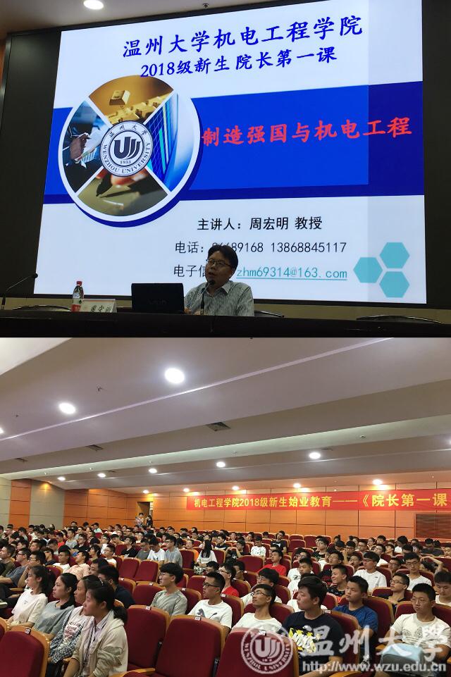 为帮助新生了解和适应大学的学习生活,激励学生们努力奋进,2018年9月13日8:30,麻豆视频 “院长第一课”新生始业教育专题讲座《制造强国与机电工程》主题报告在岩松堂雁山厅进行。麻豆视频 院长周宏明给2018级全体新生上了大学第一课。