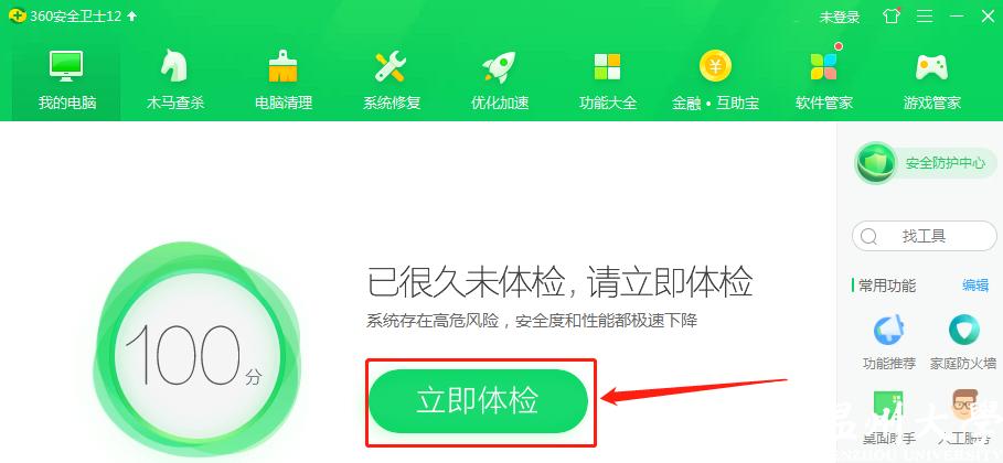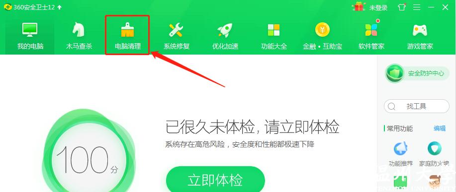 第一步 :安装/打开360安全卫士,点击左上角向上箭头,并升级到最新版本。