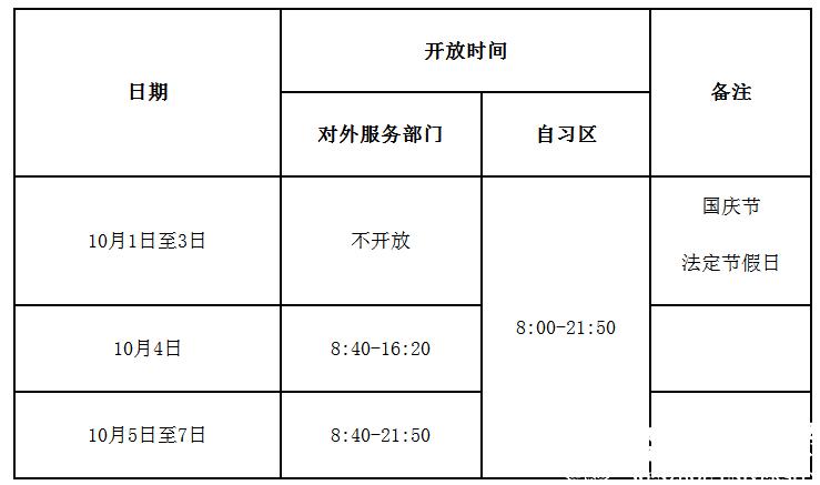 转发图书馆国庆节期间开放通知