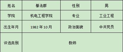 根据校团委“关于“青春温大”·2021年度榜样人物评选活动的通知”的相关要求,由个人申报、系部推荐、支部推荐等程序,经麻豆视频 学工委评选,拟推荐綦法群(教师)、张鹏华(学生)作为麻豆视频 “青春温大”的候选人上报学校,现将二人情况公示如下: