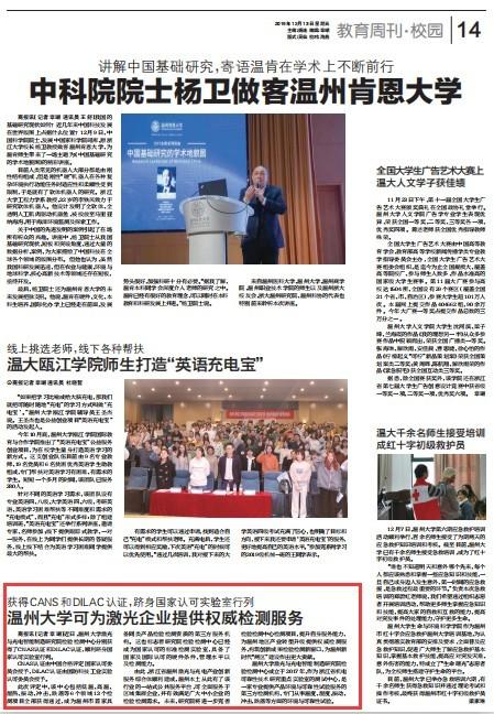 商报讯(记者 章瑚)近日,温州大学激光与光电智能制造研究院检验检测中心分别获得了CNAS认证和DlLAC认证,顺利跻身国家认可实验室行列。