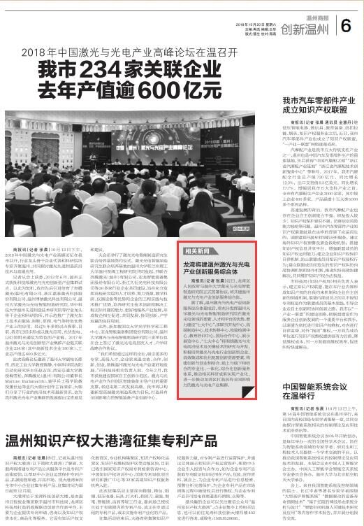 商报讯(记者 张晨)近日,龙湾区人民政府与温州大学激光与光电智能制造研究院正式签署协议,将共建温州激光与光电产业创新服务综合体。