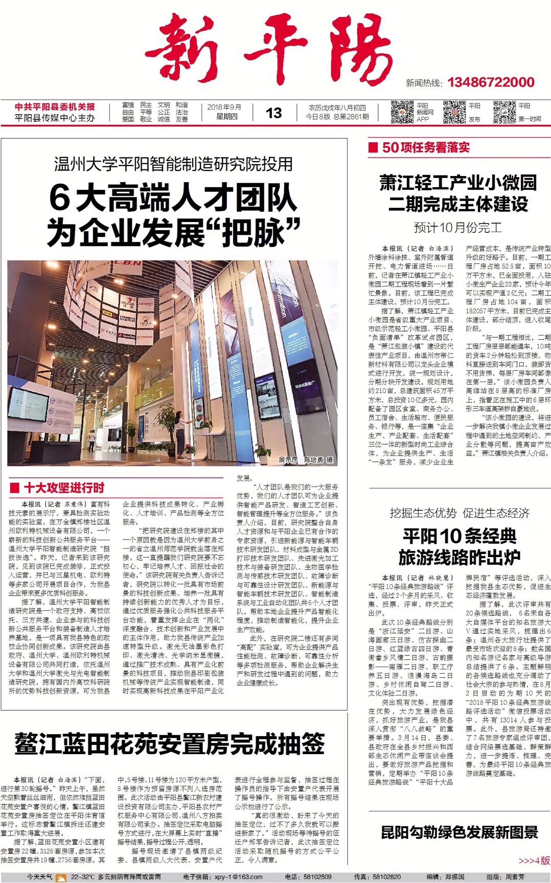 据了解,温州大学平阳智能制造研究院是一个政府支持、高校依托、三方共建、企业参与的科技创新公共服务平台和装备制造人才培养基地,是一项具有我县特色的政校企协同创新成果。该研究院由县政府、温州大学、温州欧利特机械设备有限公司共同打造,依托温州大学和温州大学激光与光电智能制造研究院,拥有国内外高校科研院所的优势科技创新资源,可为我县企业提供科技成果转化、产业孵化、人才培训、产品检测等全方位服务。