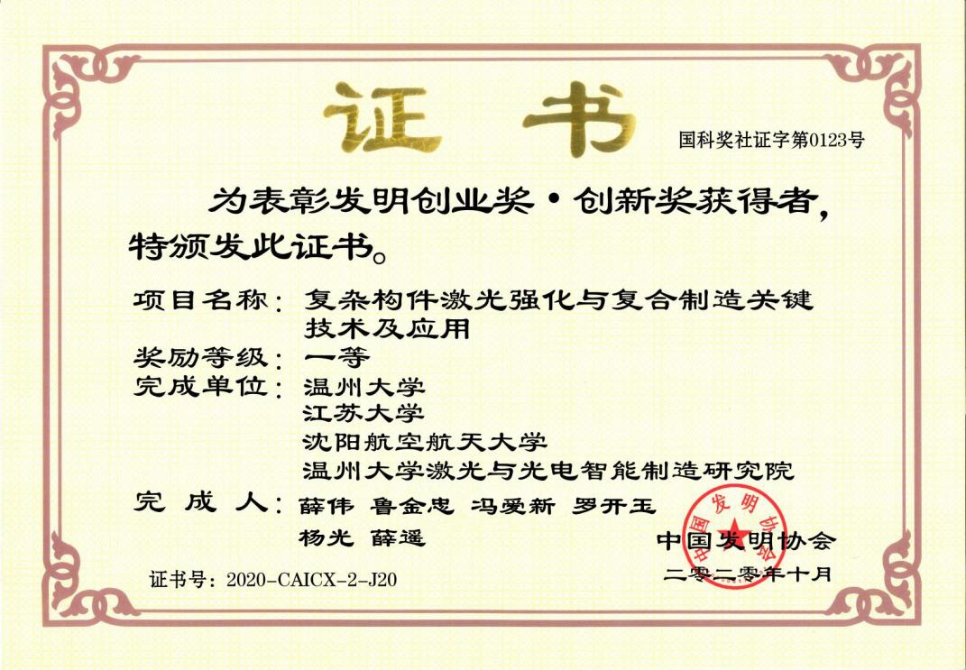 日前,中国发明协会和中国产学研合作促进会陆续公布了2020年发明创业奖·创新奖和2020年中国产学研合作创新与促进奖,其中由浙南科技城管委会和温州大学共同创建的温州大学激光与光电智能制造研究院斩获产学研合作创新奖(单位),研究院薛伟教授团队技术成果《复杂构件激光强化与复合制造关键技术及应用》获发明创业奖·创新奖一等奖,研究院创新团队薛伟教授获产学研合作创新个人奖。这一成绩见证了研究院经过四年来的发展,在产学研创新工作中又迈向了一个新的高度。