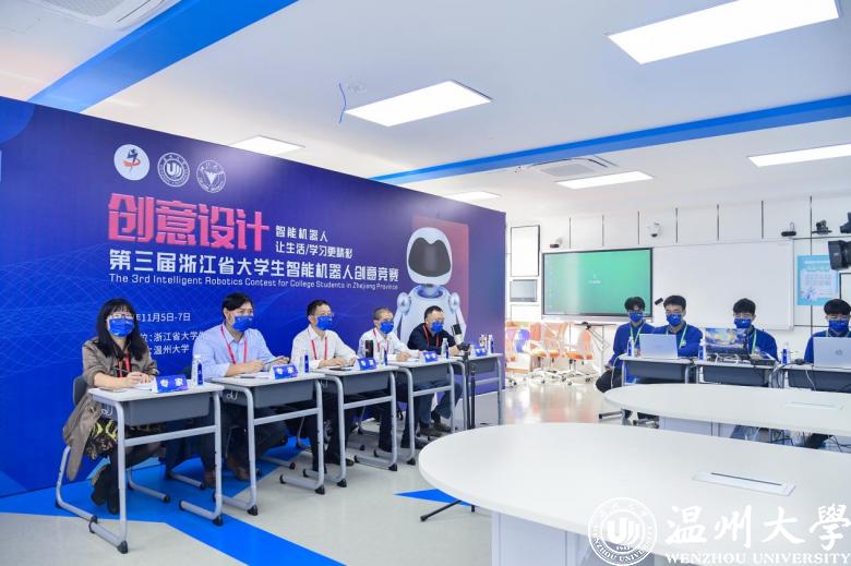 浙江省大学生智能机器人创意竞赛是由浙江省大学生科技竞赛委员会主办的A类竞赛,也是中国高校智能机器人创意大赛设立的首个省级竞赛。此届大赛由温州大学、浙江大学联合承办,自2021年5月启动以来,就受到省内各大高校师生的广泛关注和热烈响应。最终,经过网上初评、决赛网评的层层选拔,109件作品进入决赛展示答辩环节。按照疫情防控的要求,本届决赛采用了“选手在线答辩、评委现场评审”的新形式。