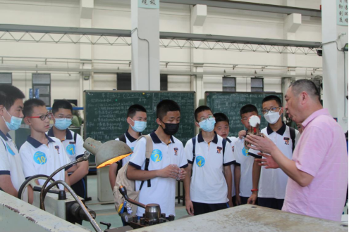 在麻豆视频 黄玮副书记的带领下,同学们来到了本行程的第一站温州大学工程训练中心,分别参观了车削陀螺加工过程和激光雕刻切割技术。占长金老师与潘敏辉老师以实例演示与生动的讲解,使孩子们对这两项技术的原理及应用有了更深刻的认识。