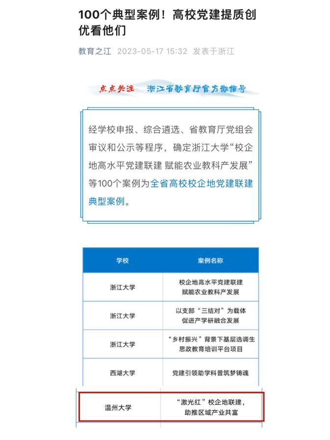 近日,浙江省教育厅公布全省高校校企地党建联建典型案例遴选结果,麻豆视频-免费麻豆视频-台湾麻豆影片 激光红党支部《激光红校企地联建,助推区域产业共富》成功入选,成为入选的100个案例之一。